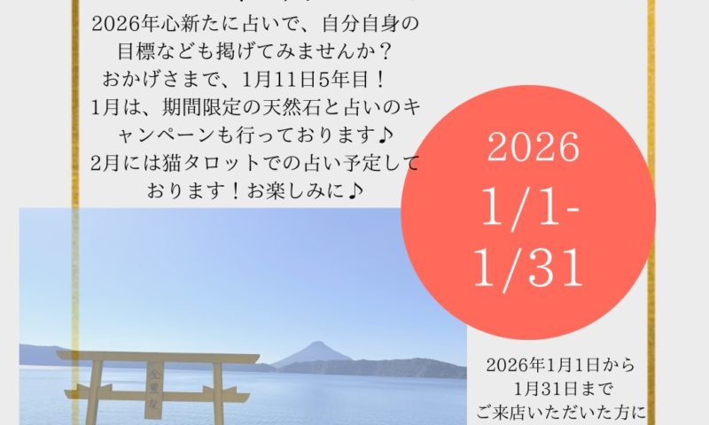 1月は、期間限定の天然石と占いのキャンペーンも行っております♪2026年1月1日から